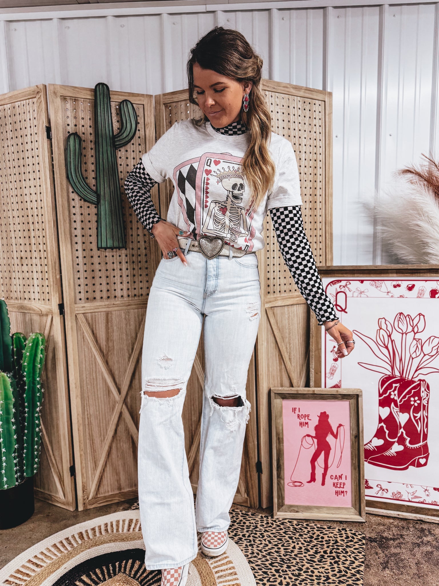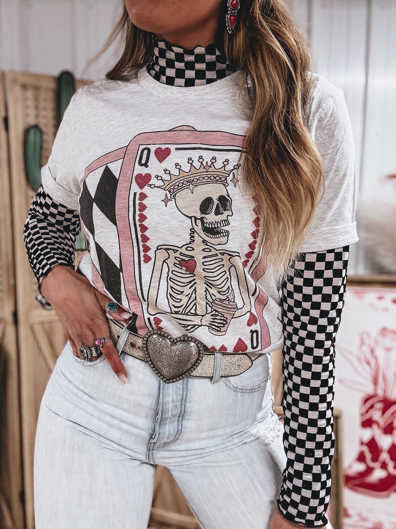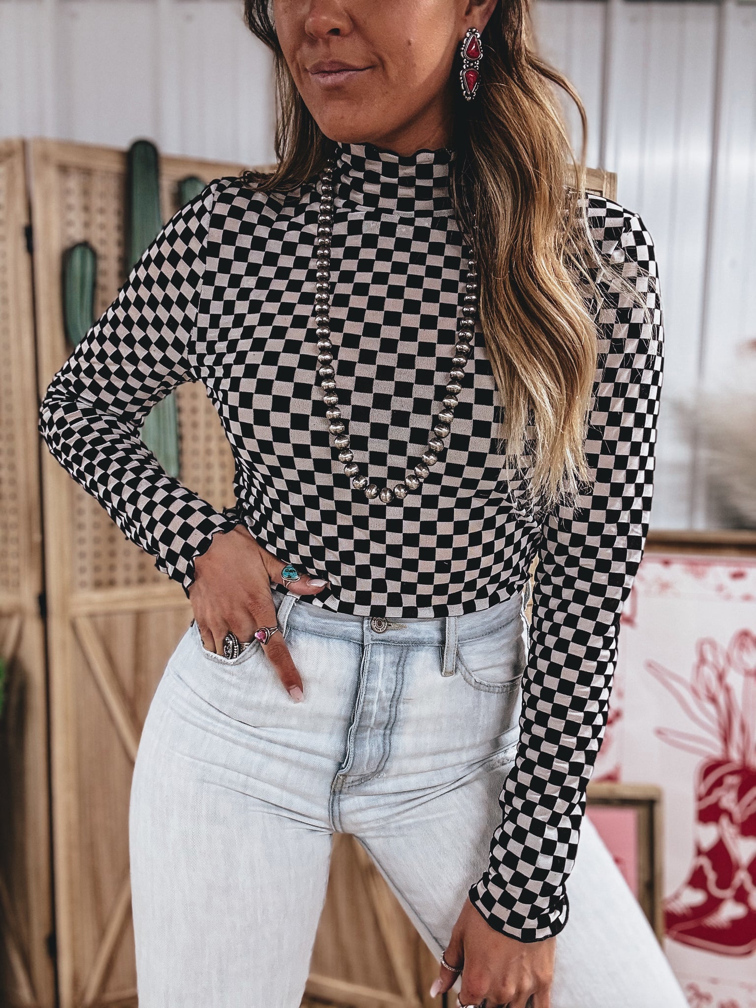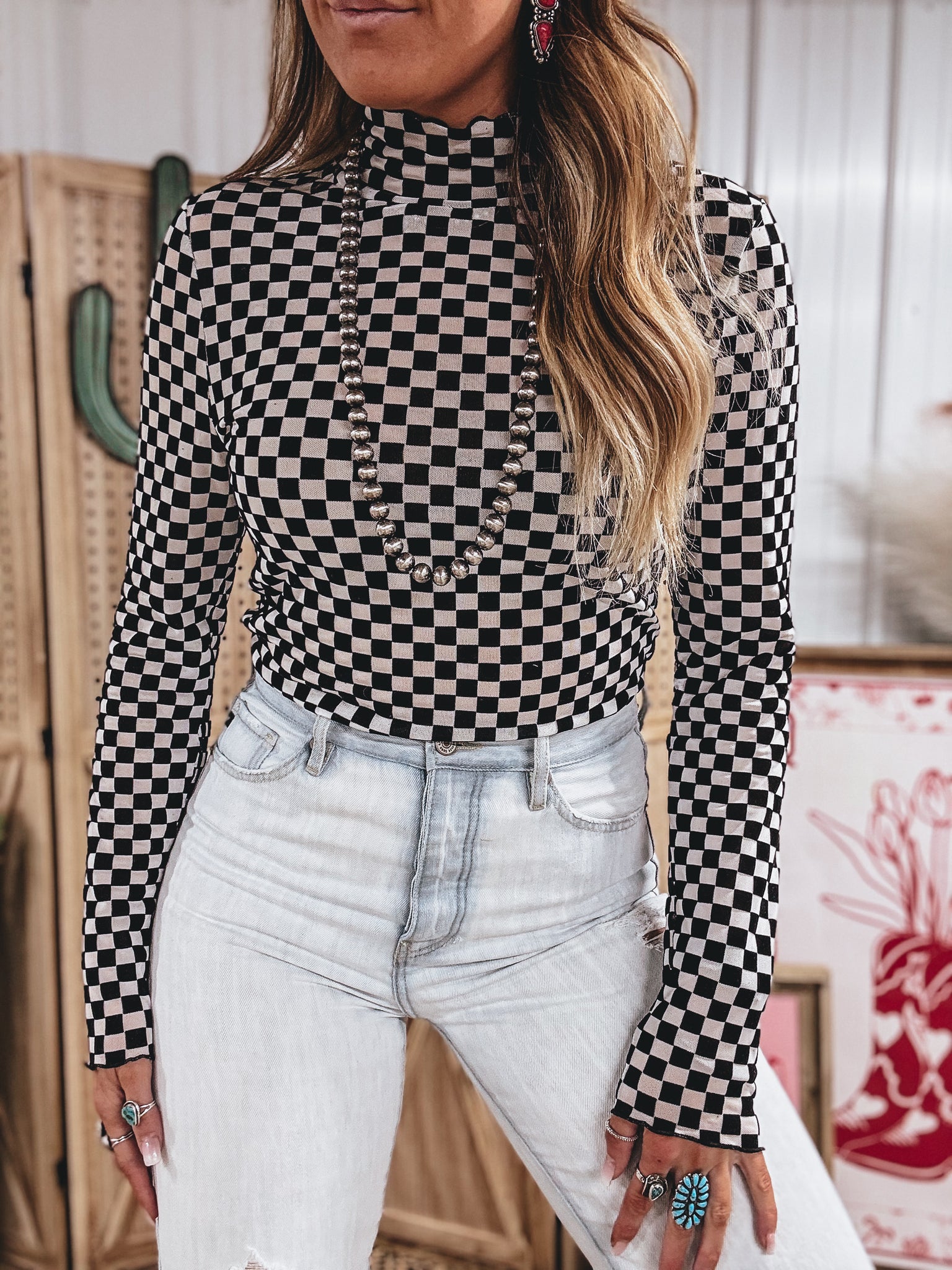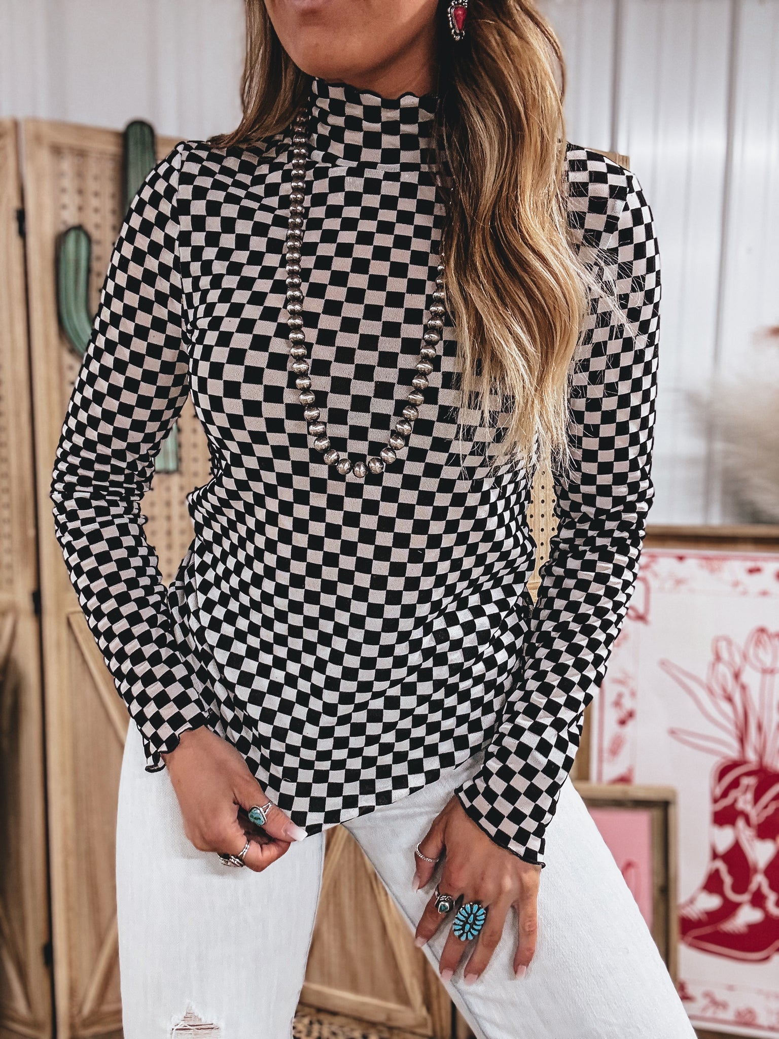 mesh and velvet contrast checkered print
