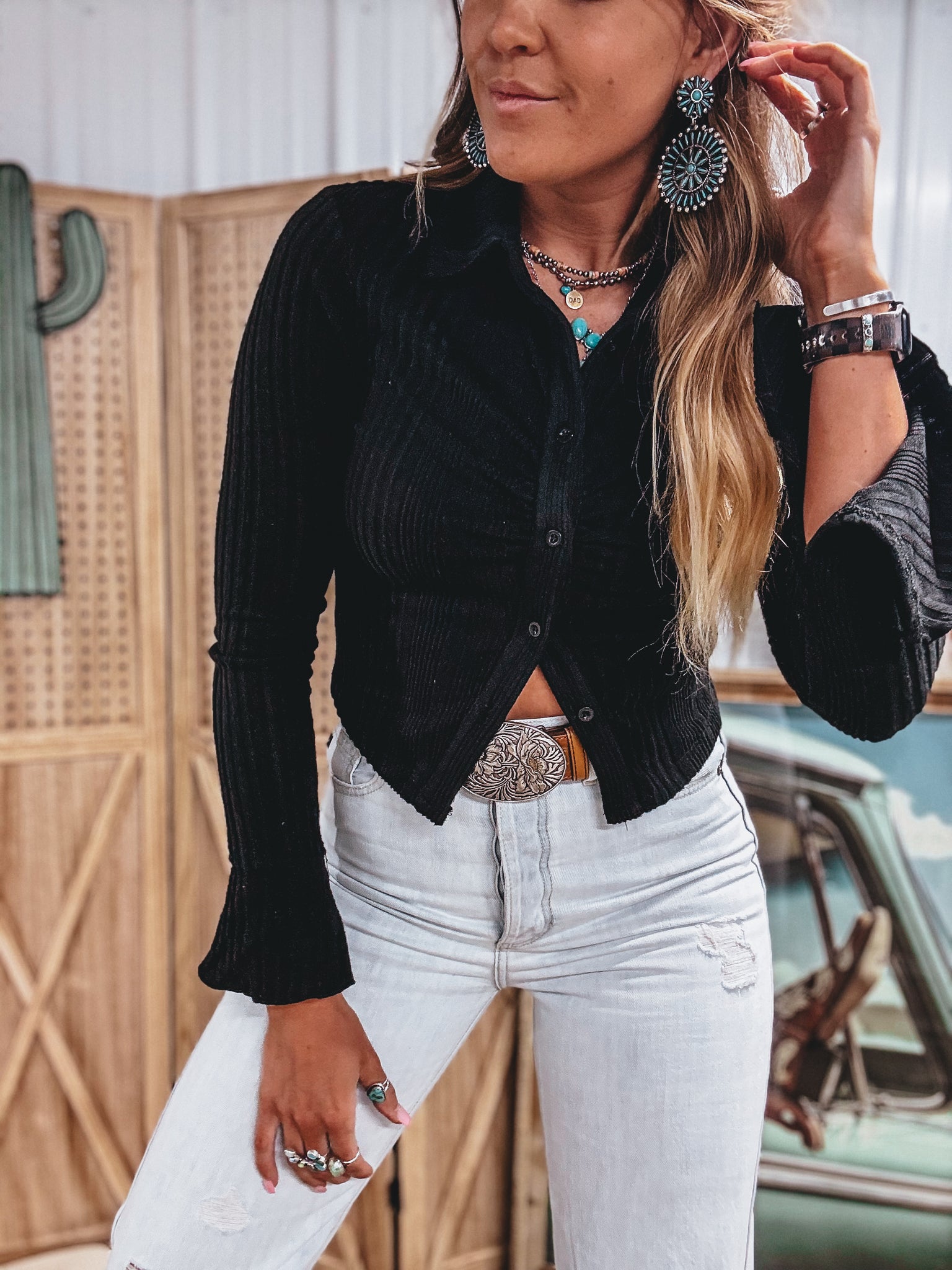 - flared cuffs