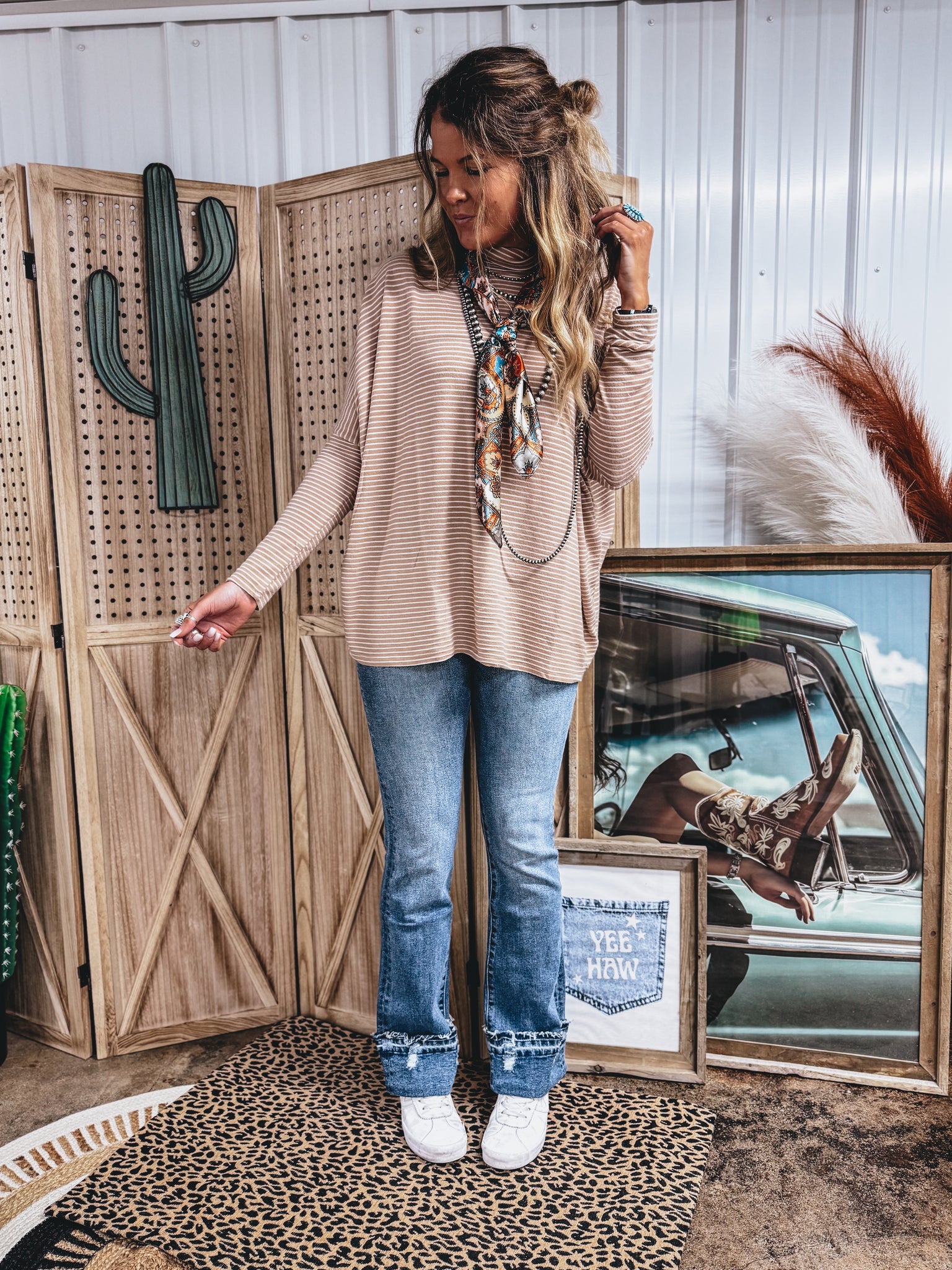 Tatum Top (Taupe/White).