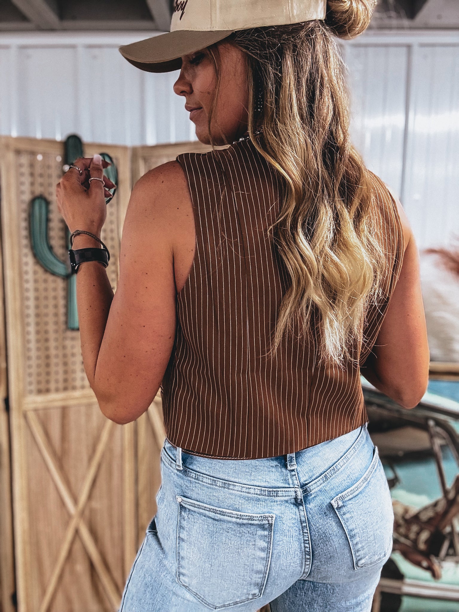 - brown color with white pinstripes